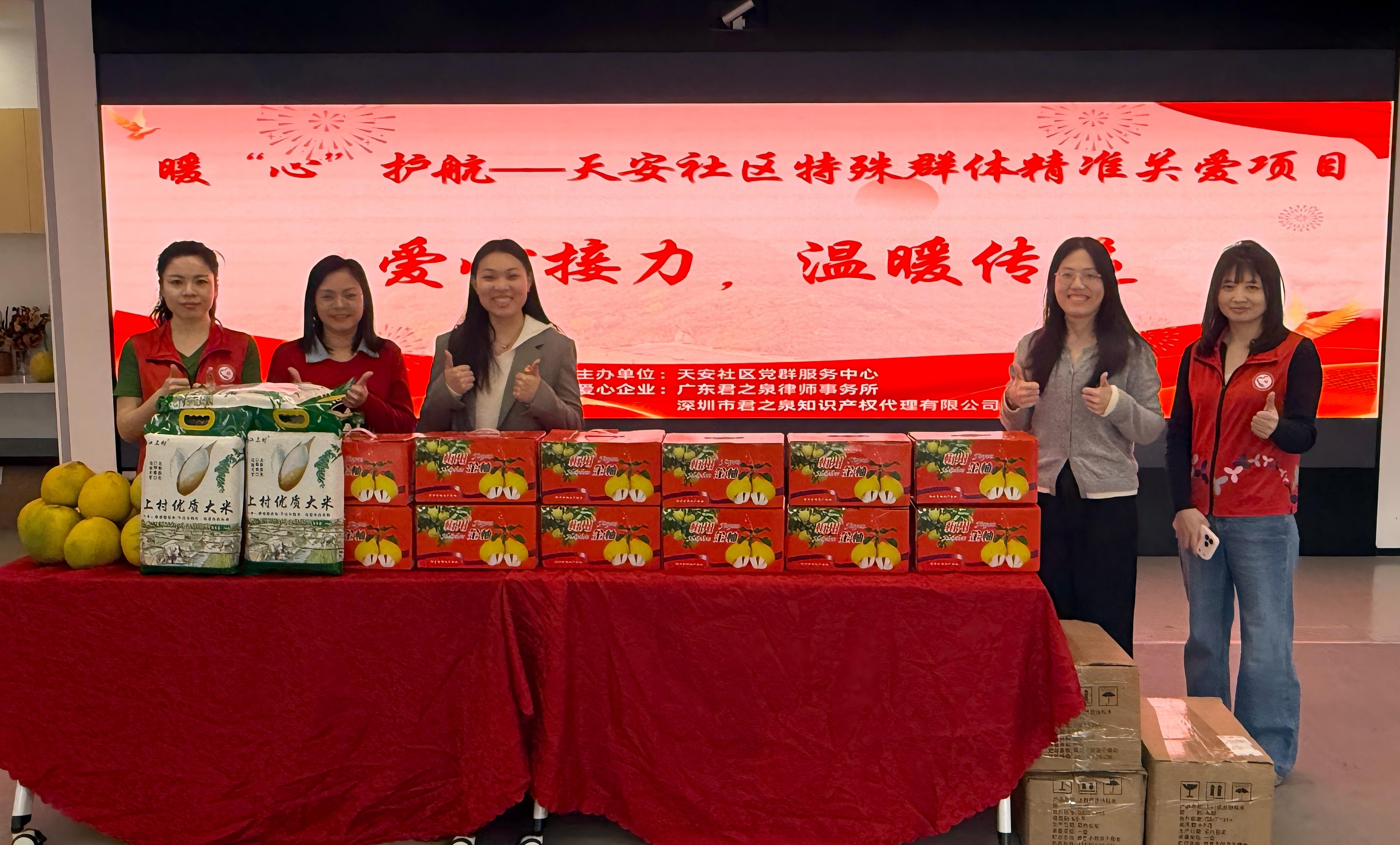 一场暖心捐赠,一份温情守护。1月29日下午,君之泉党支部与天安社区共同开展了“特殊群体精准关爱”捐赠活动,向社区特殊群体送达爱心物资与诚挚祝福。我们以行动诠释责任,用关爱传递力量。未来,君之泉党支部将一如既往,继续聚焦特殊群体的实际需要,与社区携手,共同助力构建和谐友爱、互助共融的社区环境。